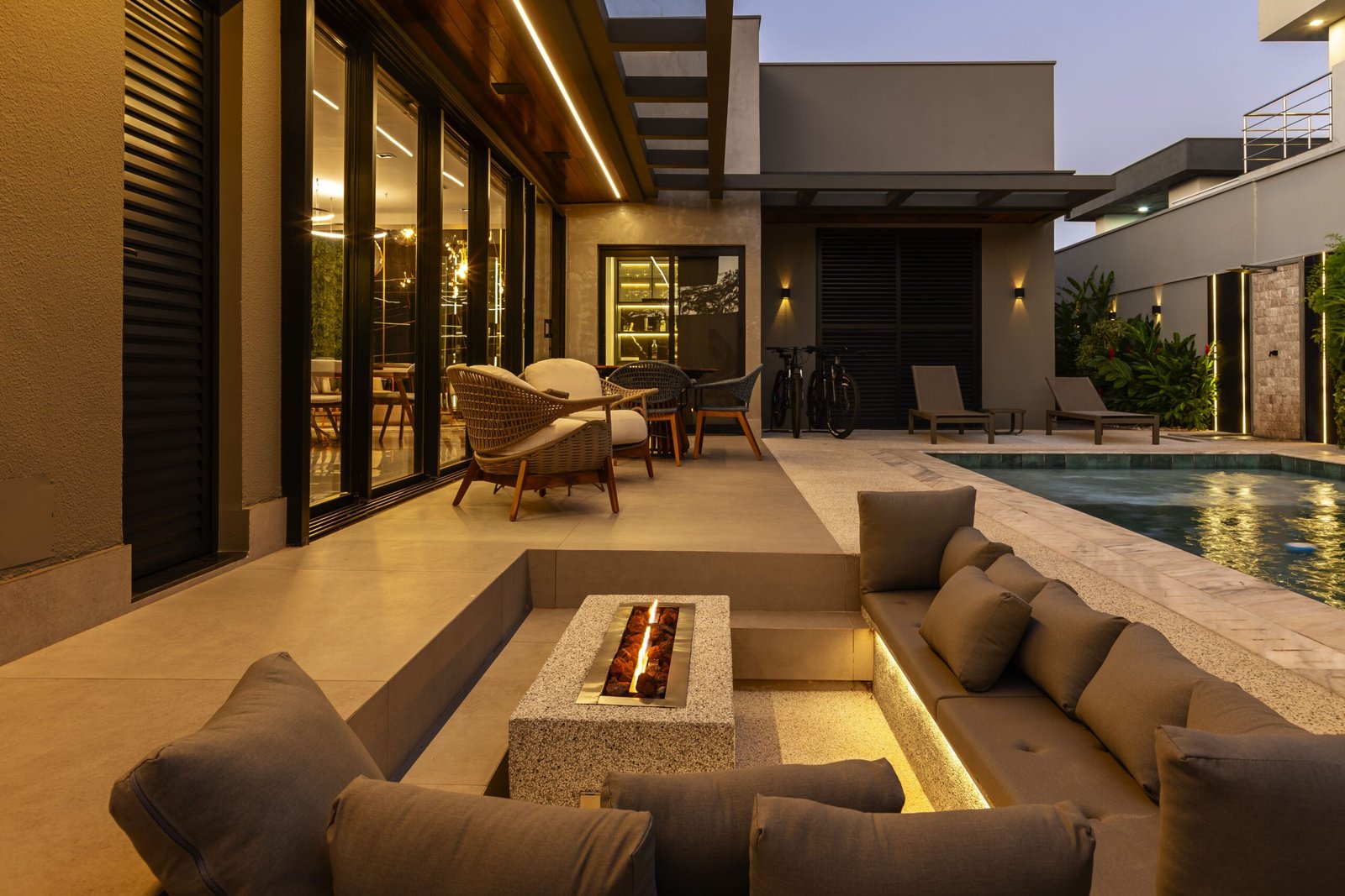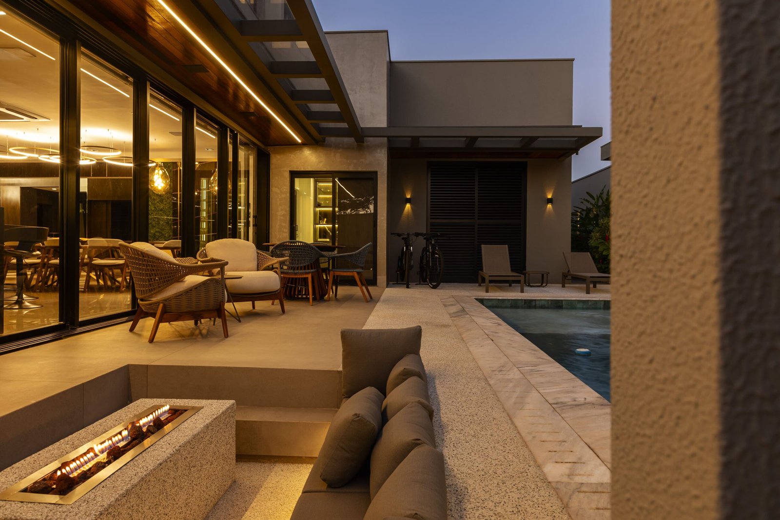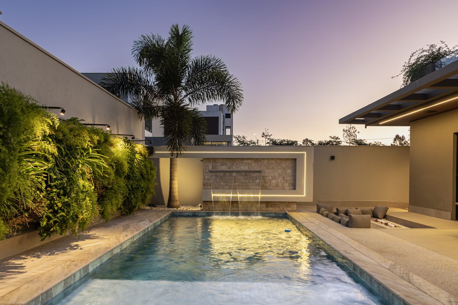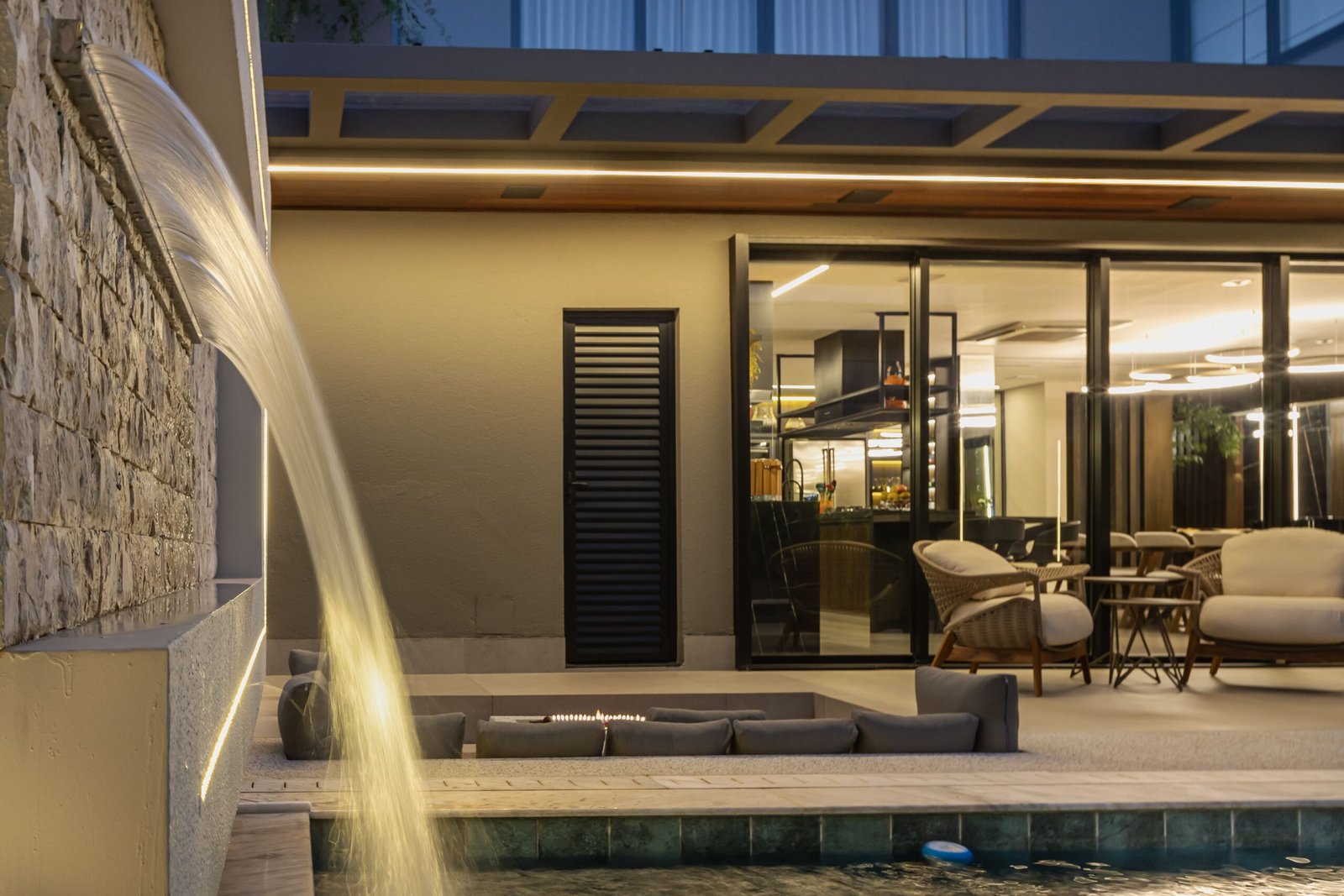 Neste projeto de reforma com execução completa, a área externa foi redesenhada para criar uma experiência sensorial de acolhimento e sofisticação.