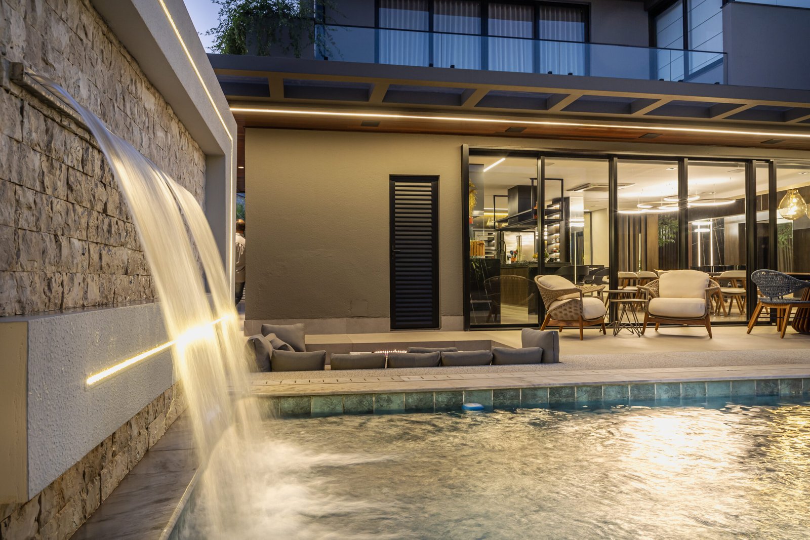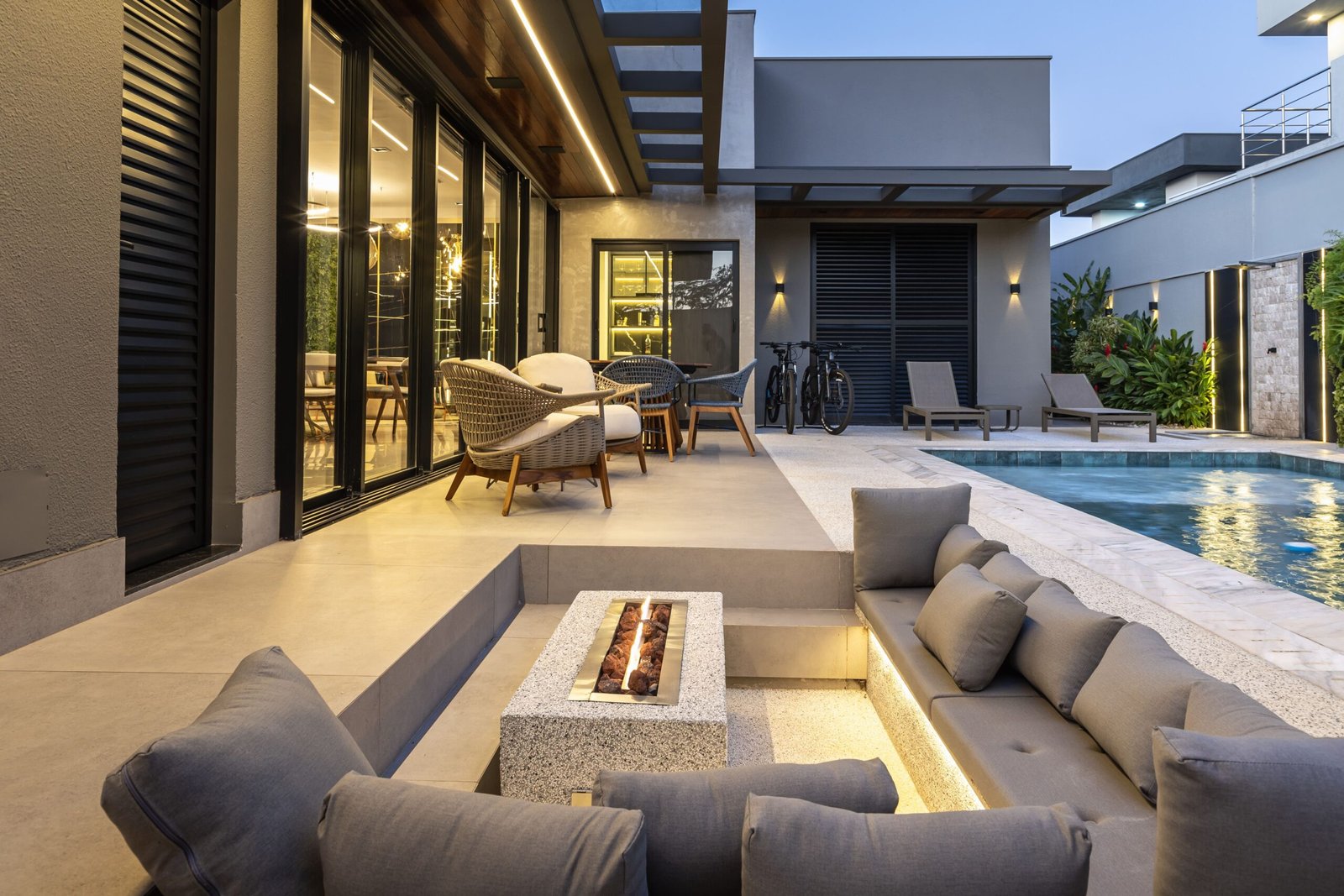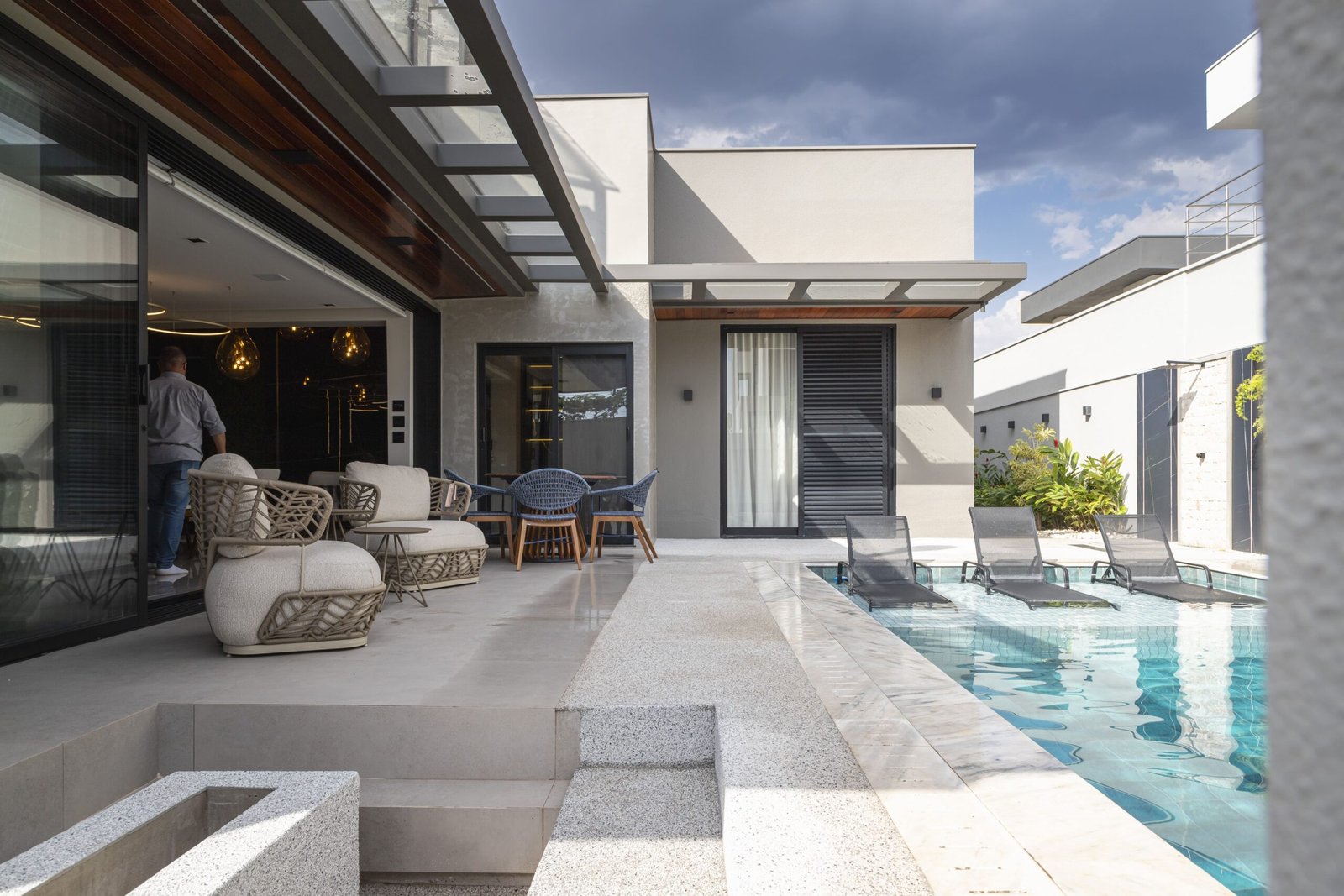 Neste projeto de reforma com execução completa, a área externa foi redesenhada para criar uma experiência sensorial de acolhimento e sofisticação.