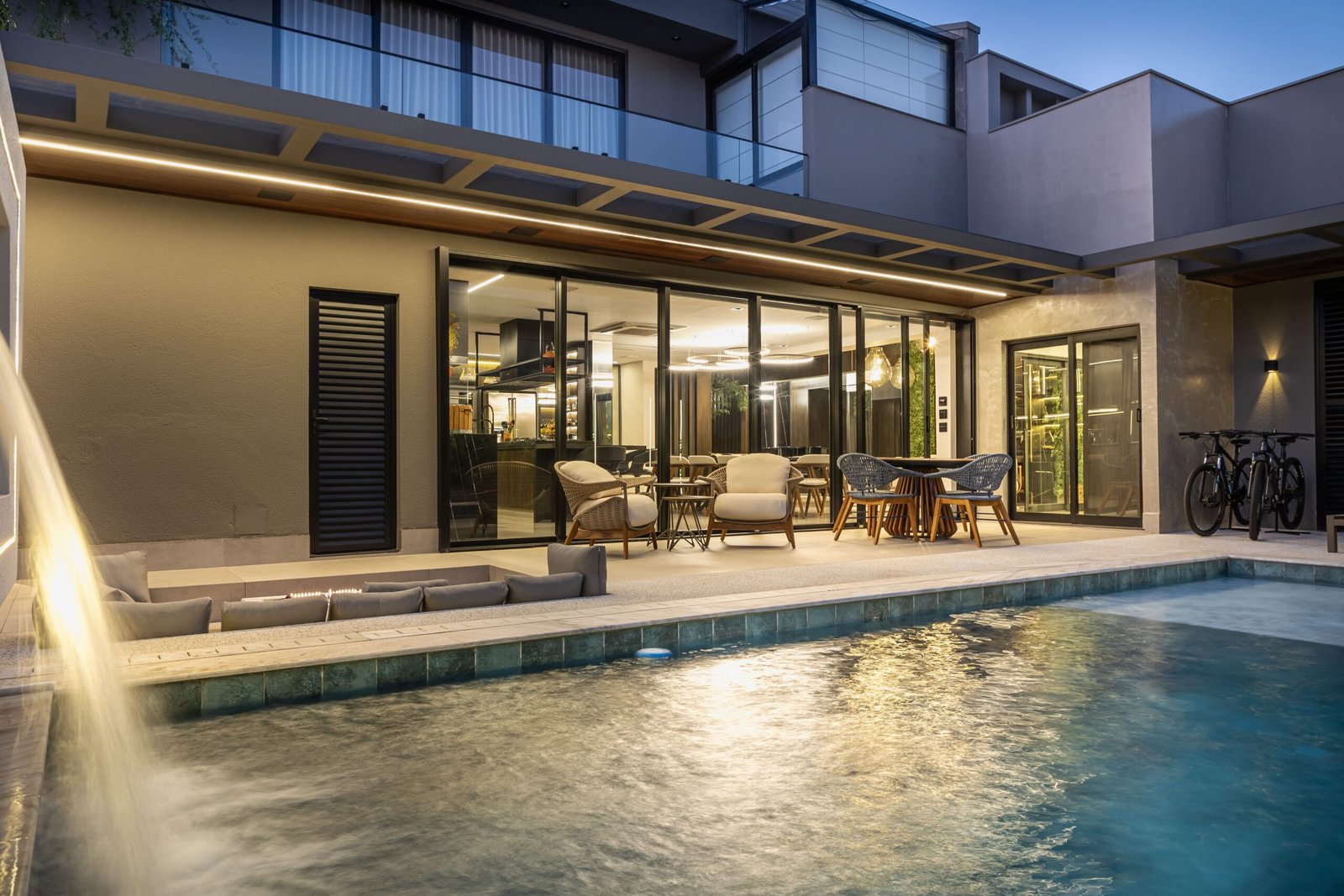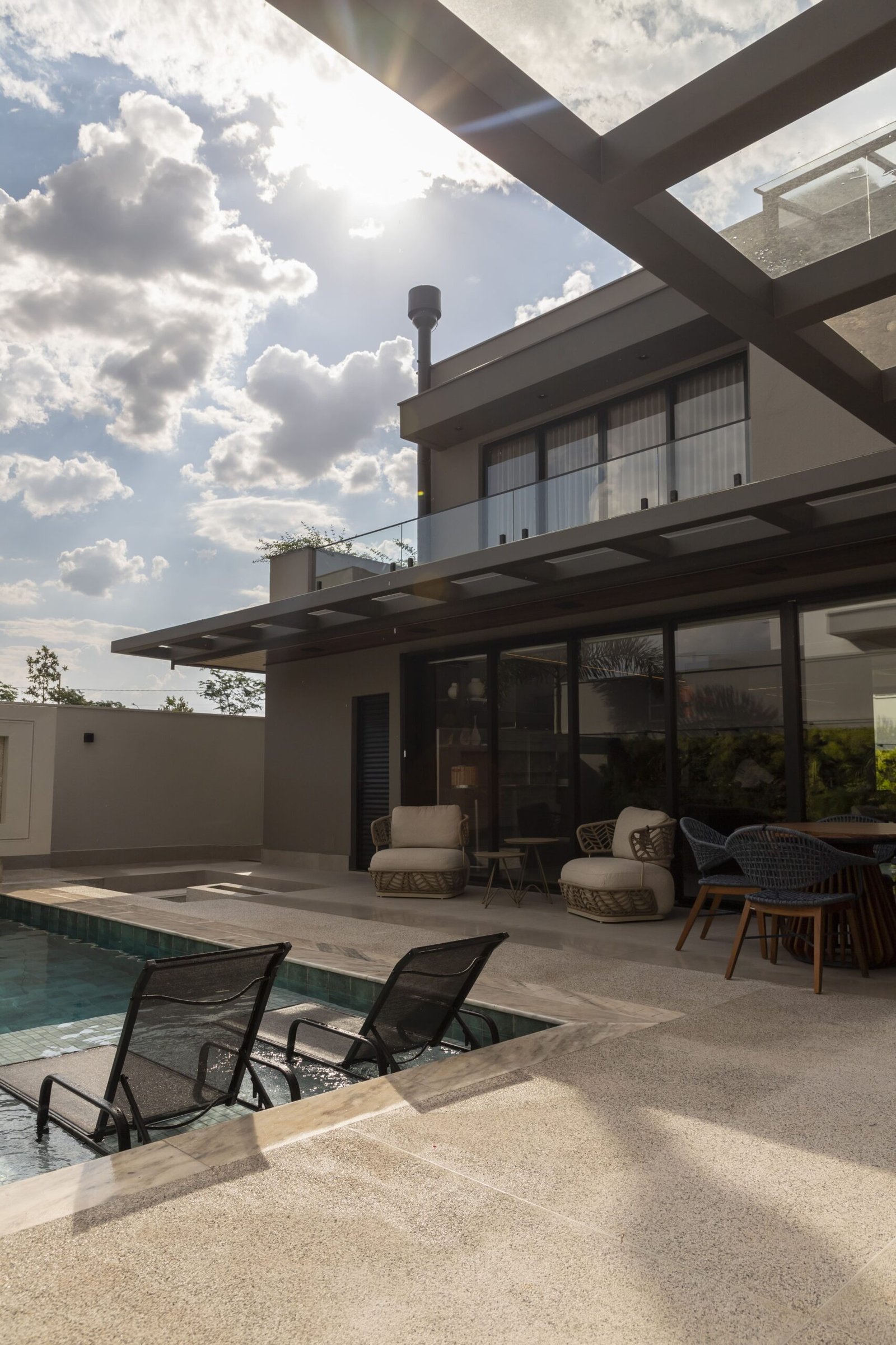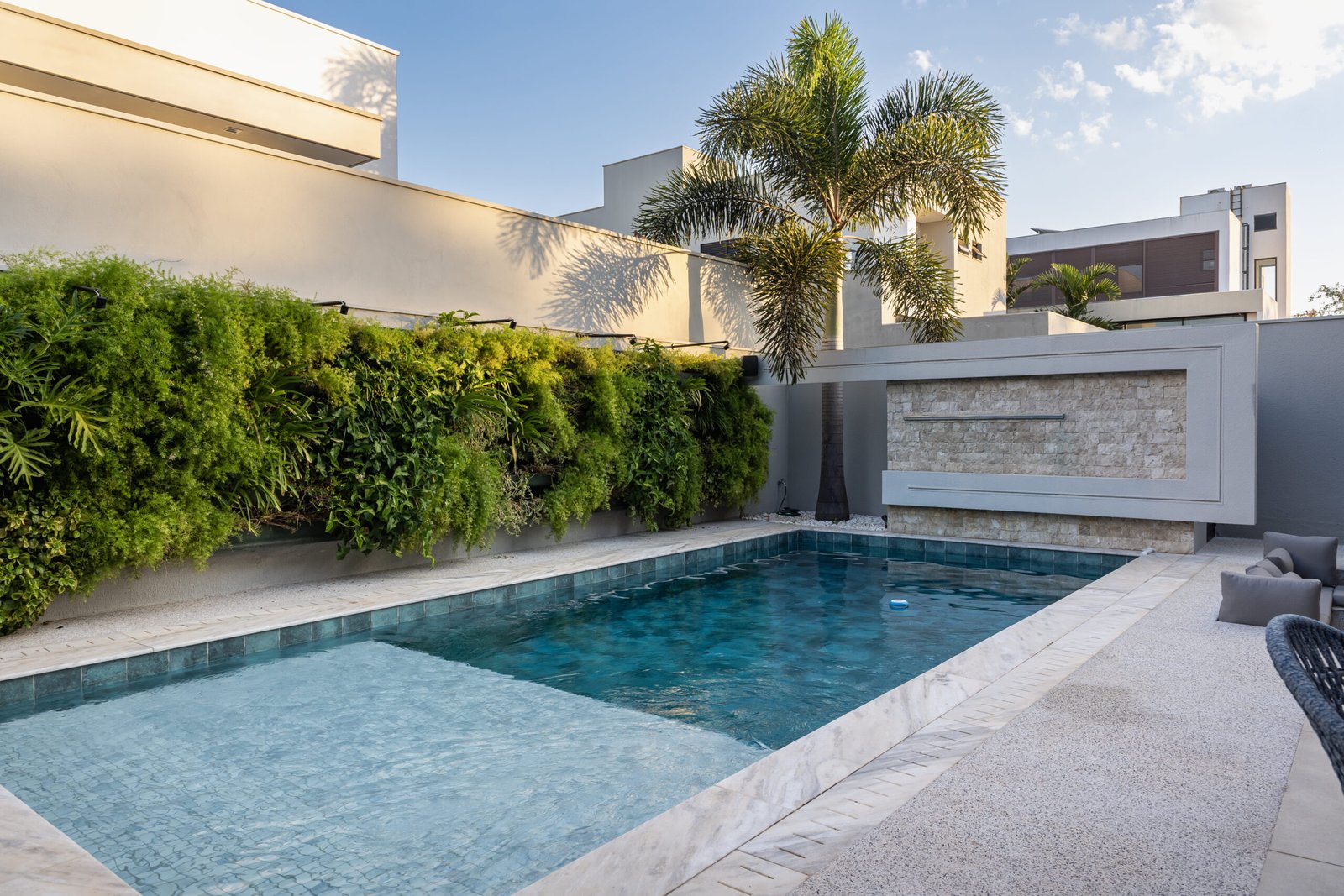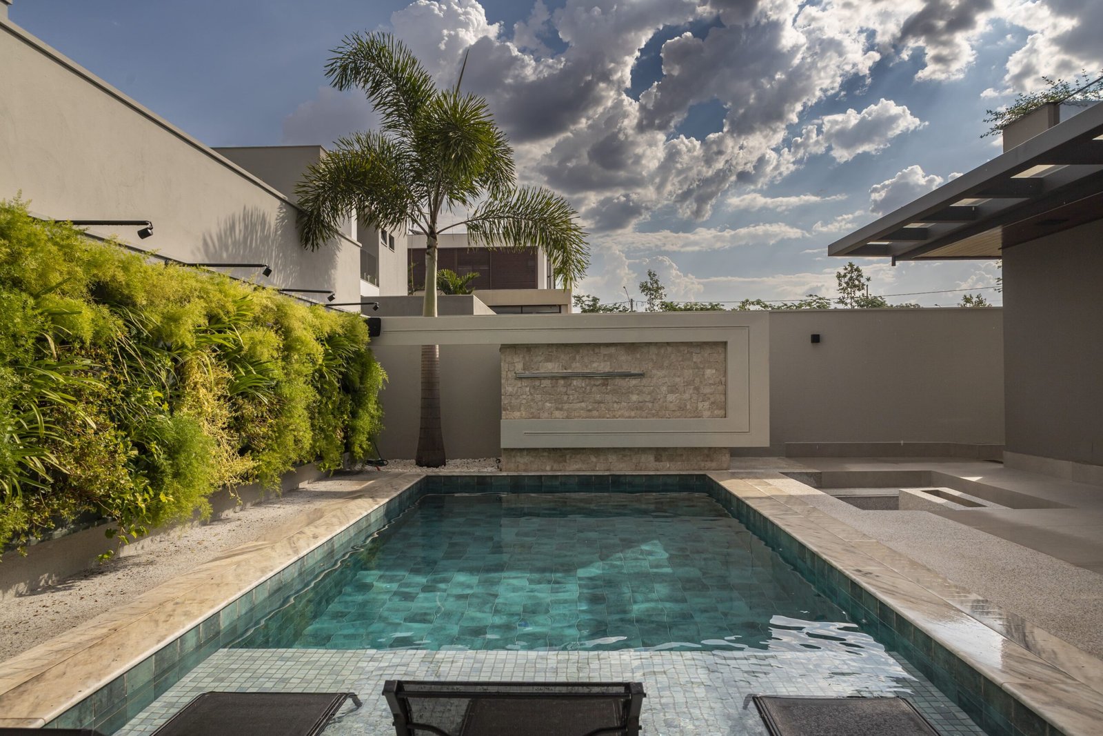 Neste projeto de reforma com execução completa, a área externa foi redesenhada para criar uma experiência sensorial de acolhimento e sofisticação.