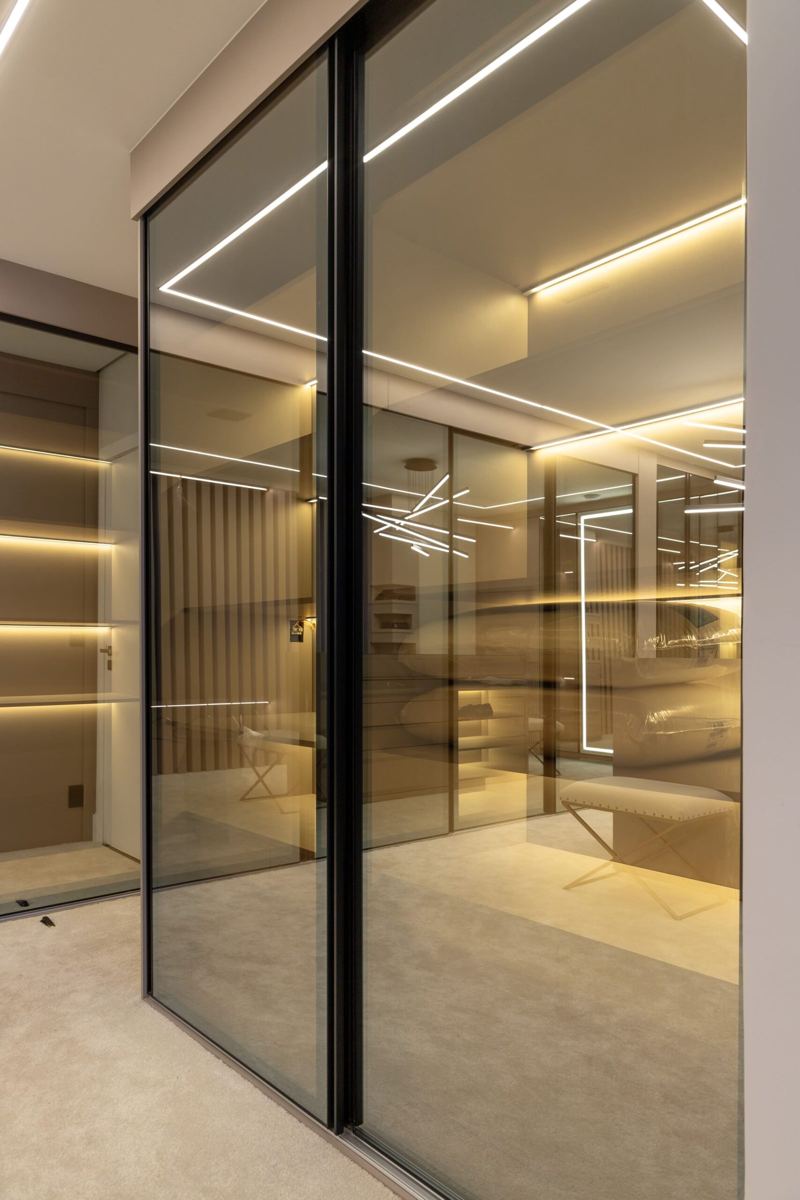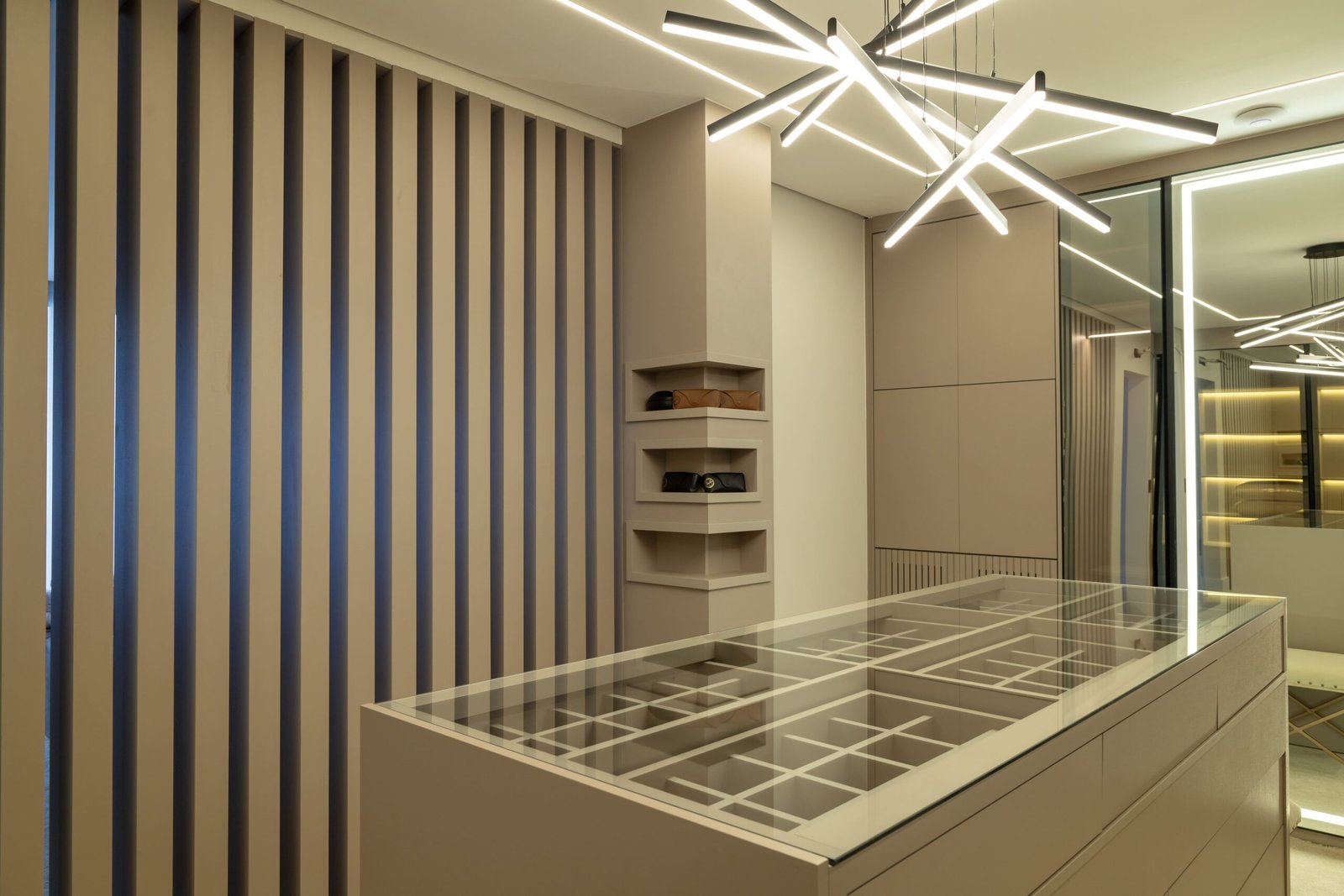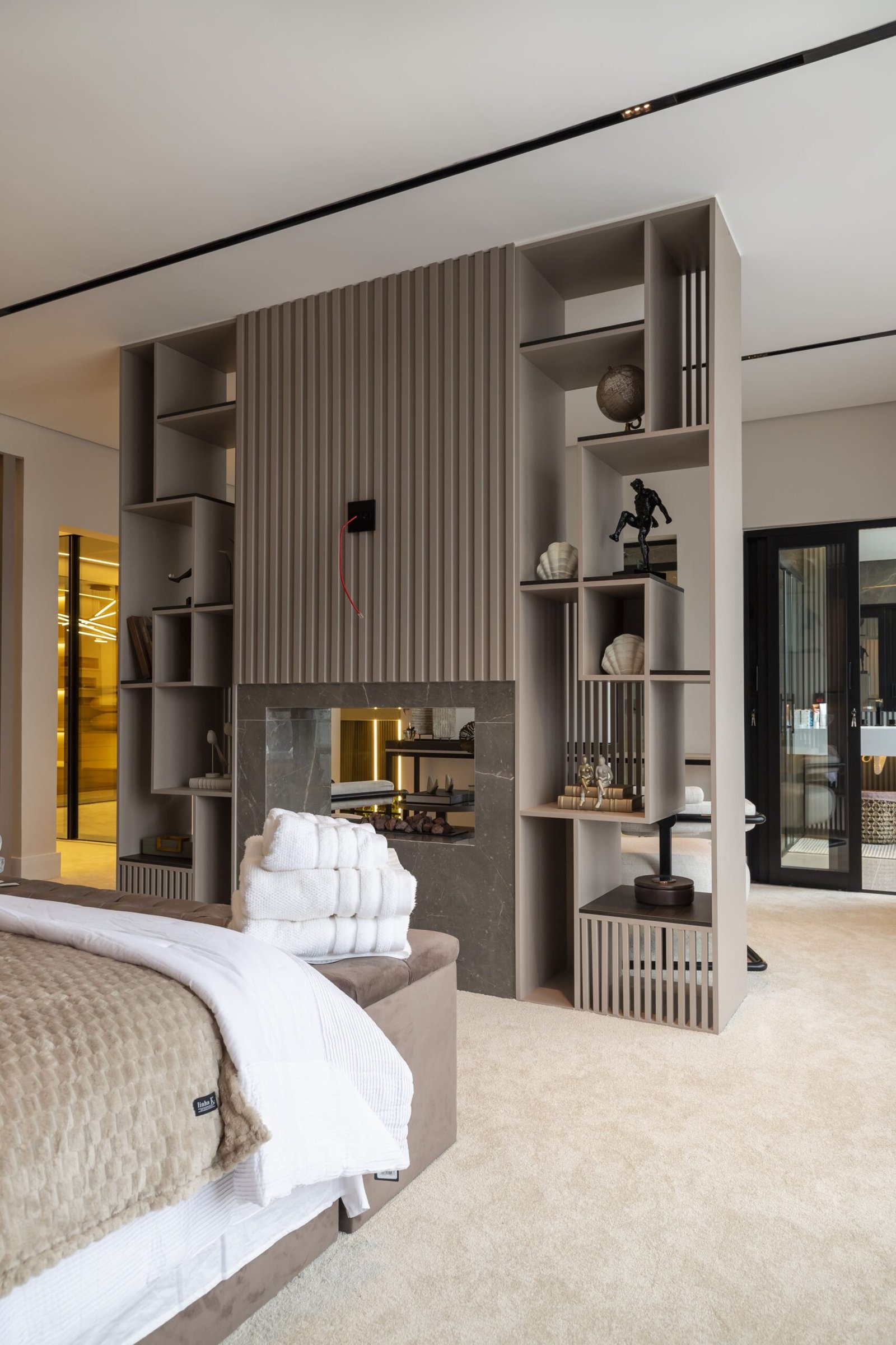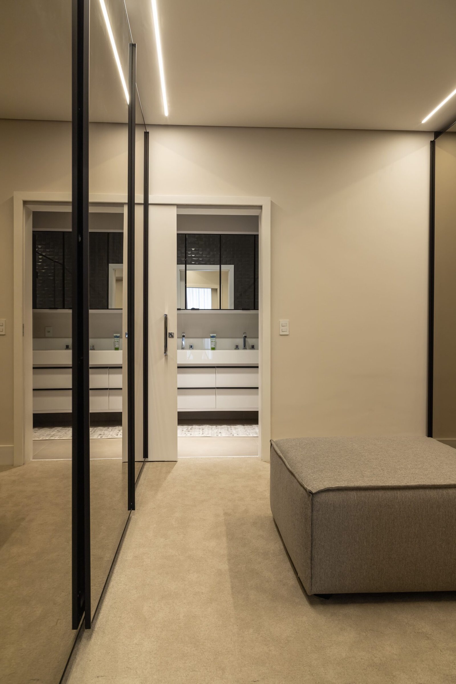 Texturas suaves, iluminação intimista e mobiliário integrado revelam uma estética contemporânea que valoriza o essencial: bem-estar, conexão e leveza