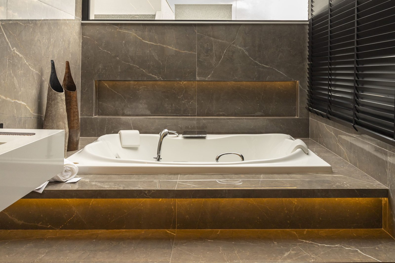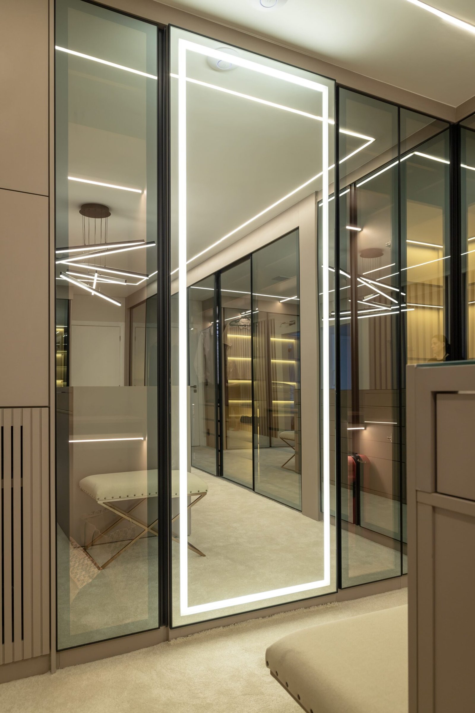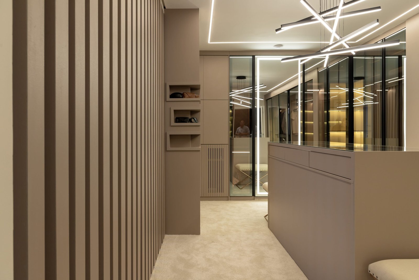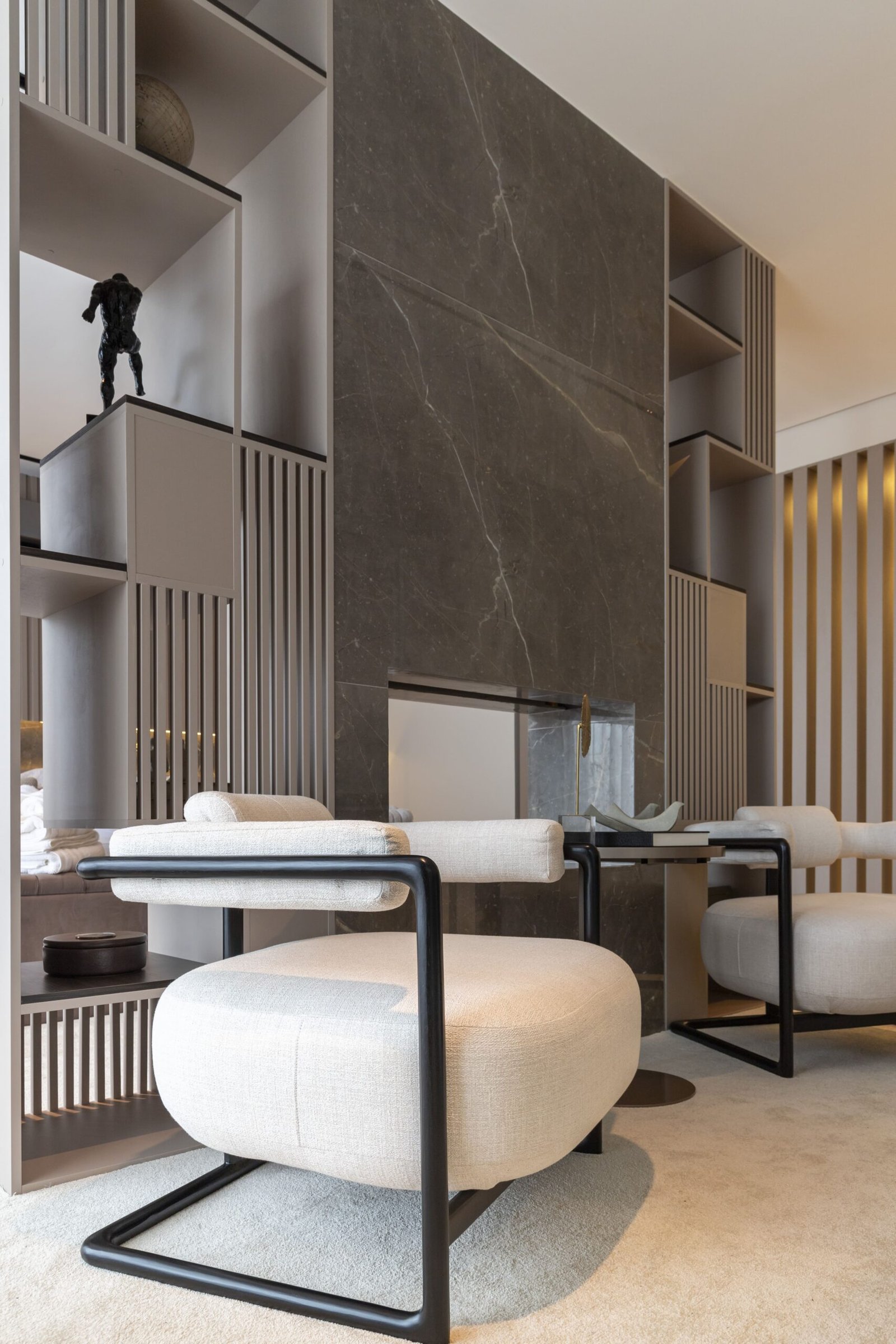 Texturas suaves, iluminação intimista e mobiliário integrado revelam uma estética contemporânea que valoriza o essencial: bem-estar, conexão e leveza